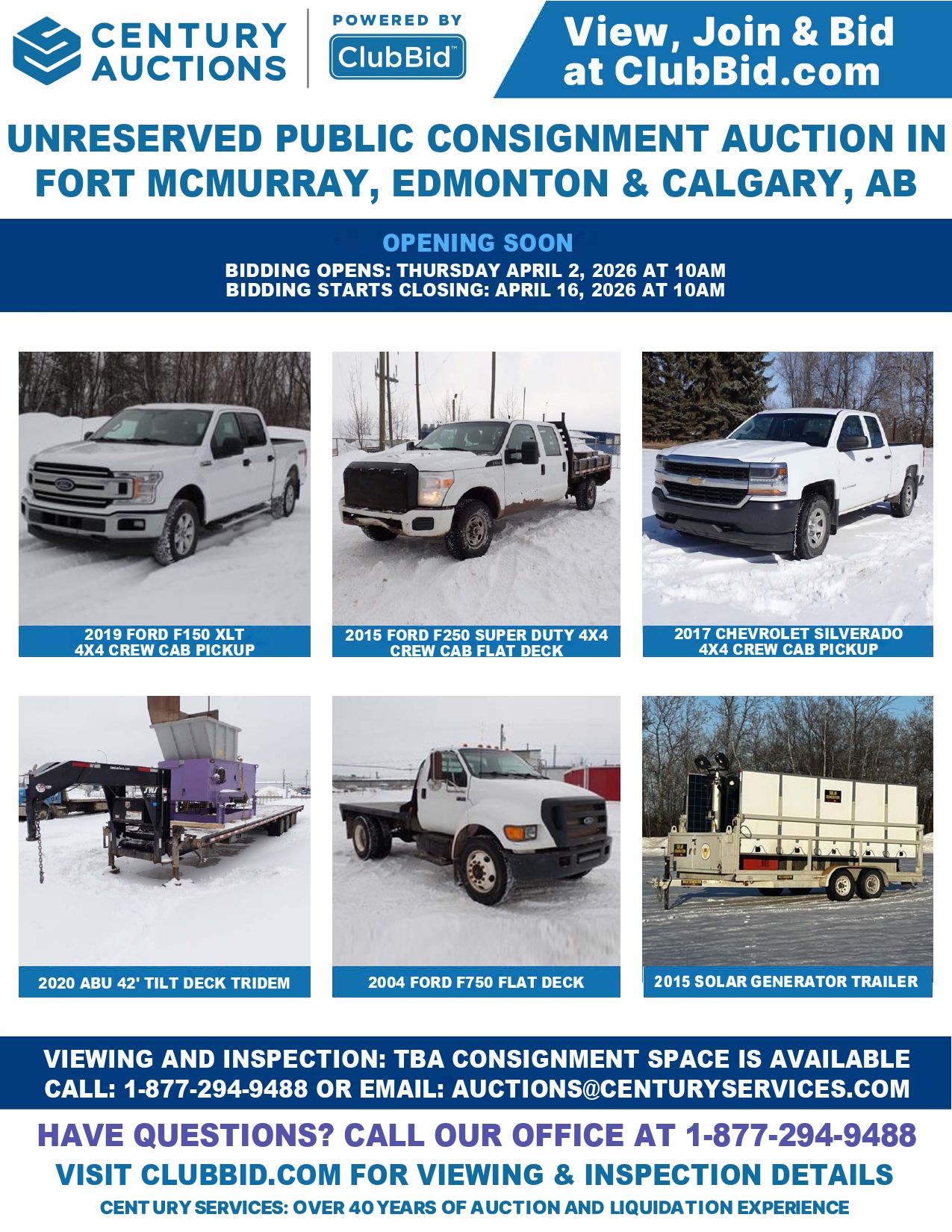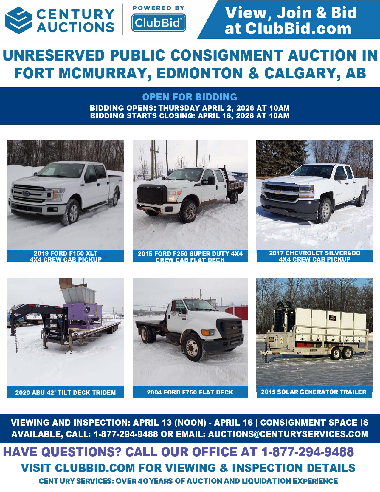 Unreserved Public Consignment Auction in Fort McMurray, Edmonton, & Calgary AB
